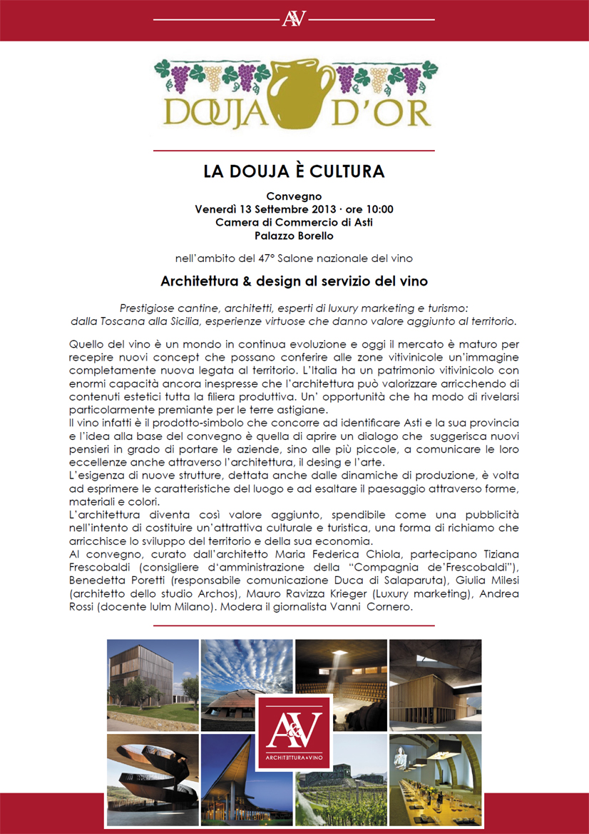 CONVEGNO ARCHITETTURA & VINO . POTENZIALITÁ DI UN TERRITORIO . 13 settembre 2013