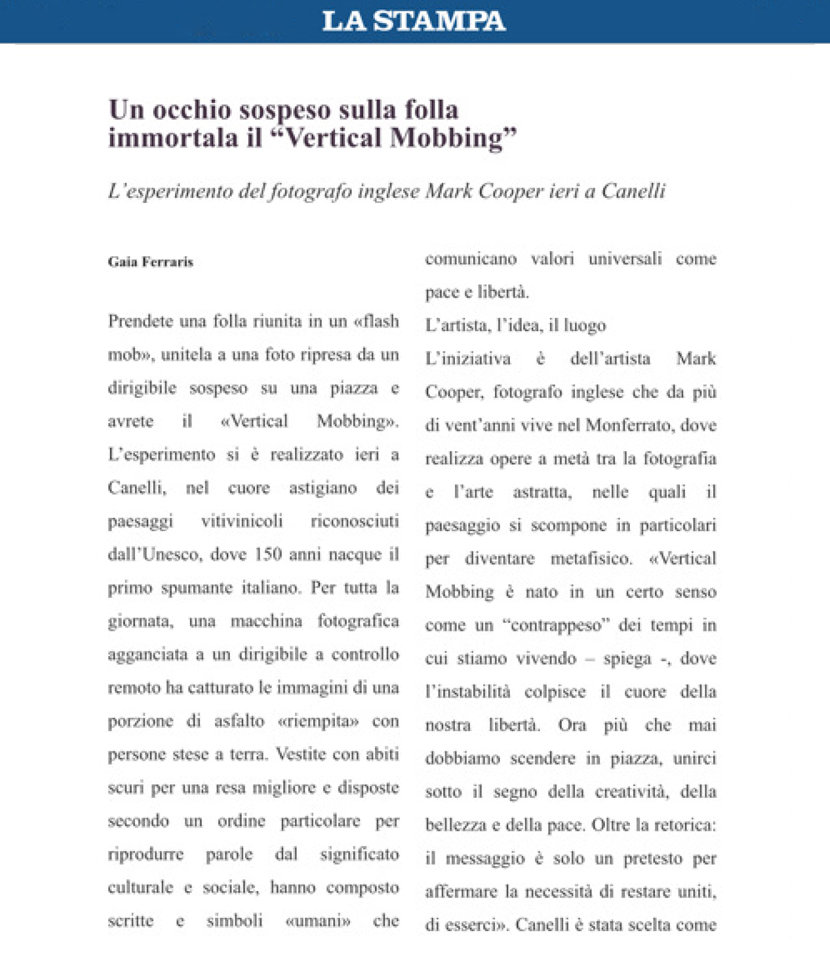 Vertical Mobbing . Un progetto di Mark Cooper a cura di Maria federica Chiola . La Stampa . 25 settembre 2017